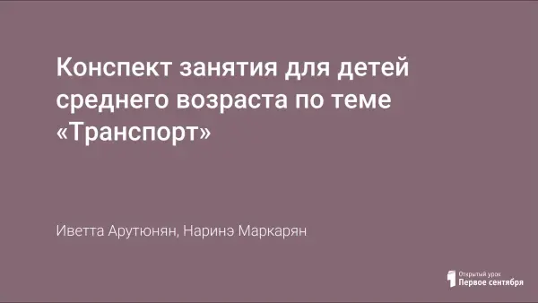 Конспект занятия для детей среднего возраста по теме «Транспорт»