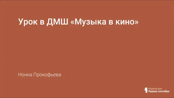 Урок рекомендован для учащихся музыкальных школ, школ искусств, общеобразовательных школ. Тема «Музыка в кино» позволяет проследить процесс взаимодействия двух видов искусства: кино и музыки. Использование разнообразного иллюстративного материала: музыкального, поэтического, кинематографического, помогает активизировать творческое начало учащихся в процессе восприятия, способствует развитию их художественного вкуса.