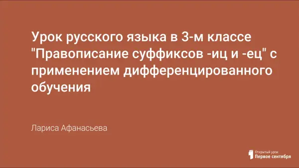 На уроке дети знакомятся с новым "опасным местом" в написании имен существительных - суффиксы -иц и -ец в безударном положении, у них формируется умение видеть эту орфограмму и применять нужное правило. Для достижения результативности урока использовала проблемный, исследовательский, программированный метод обучения.