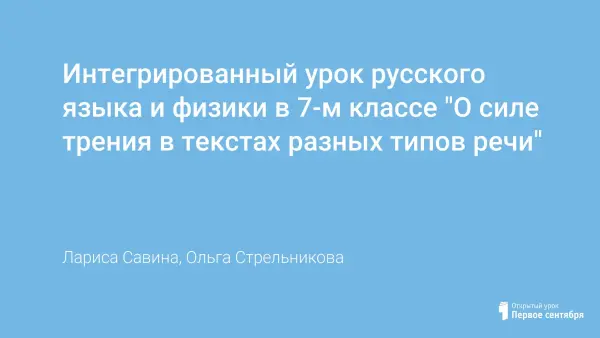 Интегрированный урок русского языка и физики в 7-м классе "О силе трения в текстах разных типов речи"