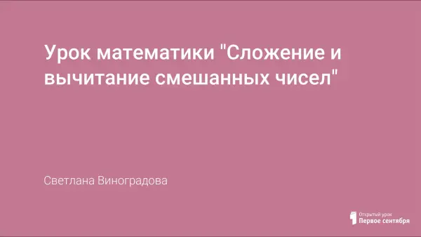 Урок обобщает и систематизирует знания о смешанных числах и действиях (сложении и вычитании с ними). Учащиеся совершенствуют навыки развития различных видов воспитания материала: на слух, зрительно, с помощью наглядного материала и т.д. Развивают интерес к математике.