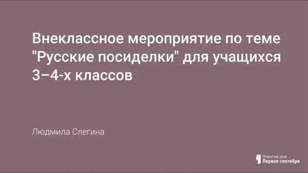 Представлен сценарий внеклассного мероприятия на тему "Русские посиделки" для учащихся 3-4-х классов. У детей воспитывается бережное отношение к культурным обычаям и традициями, патриотизм, дети приобщаются к культурному наследию родного народа.