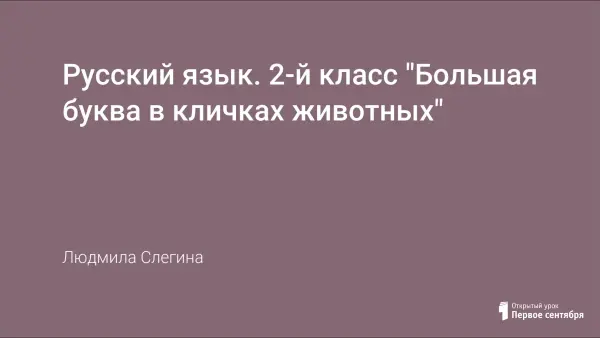 В статье представлена разработка урока, основная цель которого – дать понятие о большой букве в кличках животных и научить отличать названия животных от их кличек. Кроме того, в ходе урока повторяются другие ранее пройденные темы.