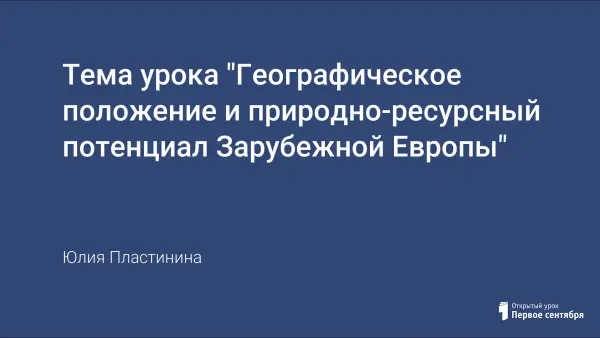 Задачи урока: формирование знаний о географическом положении и оценка природно-ресурсного потенциала Зарубежной Европы; формирование научного мировоззрения при раскрытии вопроса о хозяйственной оценке природно-ресурсного потенциала как исторической категории; развитие умения работать с картами, учебником, атласом, отработать навыки анализа карт.