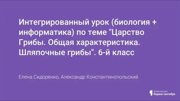 Интегрированный урок (биология + информатика) по теме "Царство Грибы. Общая характеристика. Шляпочные грибы". 6-й класс