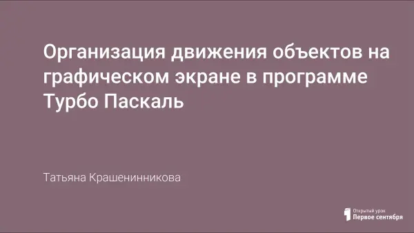 Один из уроков элективного курса «Графические возможности среды Турбо Паскаль». знакомит учащихся с понятием анимации. В результате учащиеся должны сформировать умение организовывать перемещение фрагментов рисунка на экране, используя при этом основные графические процедуры и коды определенных клавиш управления.