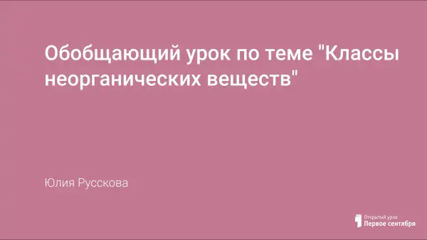 В ходе урока обобщаются знания о классификации неорганических веществ; особенностях состава веществ; номенклатуре веществ; формируются навыки проведения эксперимента.