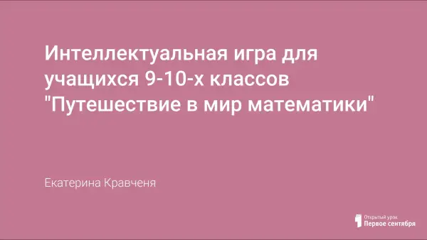 Сценарий внеклассного мероприятия по математике для 9–10-х классов. В ходе игры учащиеся решают задачи-шутки, логические задачи, комбинаторные задачи, задачи на внимание, ребусы и диаграммы. Игра способствует развитию познавательной активности, творческих способностей, смекалки и сообразительности у учащихся.
