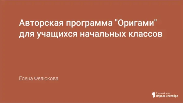 Программа направлена на развитие творческих способностей детей, воображения, пространственного восприятия, интереса к народным традициям и различным культурам. Отличительная особенность: тесное переплетение нескольких областей интересов. На занятиях, кроме техники овладения оригами, дети углубляют свои познания о природе и географии.