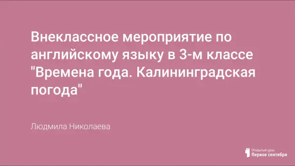 Открытое мероприятие для учащихся 3-го класса, которые занимаются по УМК И.Н. Верещагиной и изучают английский язык с 1-го класса. В системе уроков по теме «Времена года» оно является заключительным. При проведении занятия используются логико-коммуникативные опорные схемы и проекты, разработанные учащимися. Стихотворный материал подобран с учетом возрастных особенностей учащихся. Монологические и диалогические высказывания учащихся по теме строятся на принципах коммуникативно-ориентированной направленности.