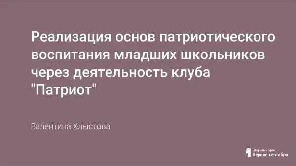 В работе рассказывается о принципах, форме, направлениях работы клуба, о его достижениях. Представлены этапы реализации основных задач патриотического воспитания.
