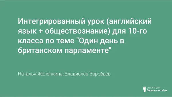 Интегрированный урок (английский язык + обществознание) для 10-го класса по теме "Один день в британском парламенте"
