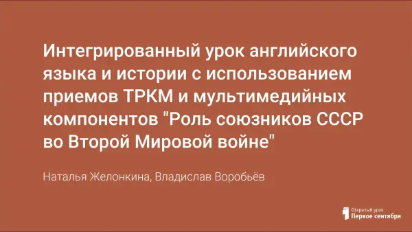 Интегрированный урок английского языка и истории с использованием приемов ТРКМ и мультимедийных компонентов "Роль союзников СССР во Второй Мировой войне"