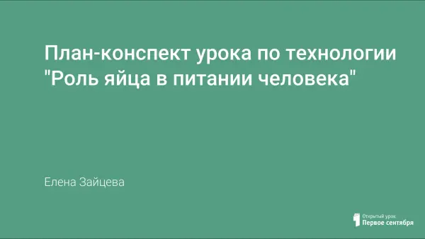 Цель: познакомить учащихся с ролью яйца в питании человека, с признаками доброкачественности яйца и научить делить яйцо на категории; воспитывать эстетический вкус, прививать навыки культуры и аккуратности.
