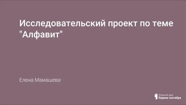 Проектно-исследовательская работа посвящена изучению темы «Алфавит» и предназначена для учащихся 3-4-х классов, учителей начальных классов, родителей учащихся и всех тех, кому это интересно. Содержание проекта отражает самостоятельные исследования учащихся, соответствует их интересам, возможностям и уровню знаний.