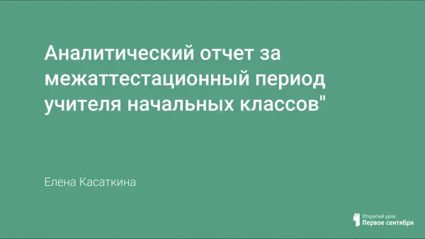 Аналитический отчет (фрагмент) показывает результаты работы учителя за межаттестационный период. Цель работы: овладение теорией и практикой интегрированного обучения и проектного метода в начальных классах, внедрение в свою практику и практику образовательного учреждения, данных педагогических технологий.