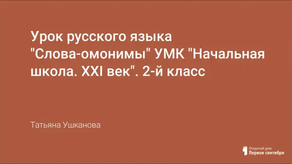 Урок знакомит детей со словами-омонимами. В процессе работы формируются умения находить слова-омонимы в предложениях, использовать их в речи. Большое внимание уделяется развитию орфографической зоркости, логического мышления, навыков связной речи.