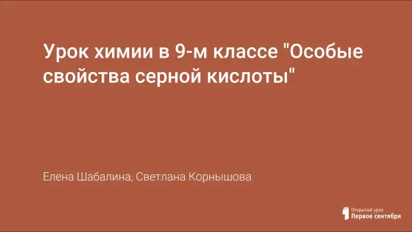 Урок химии в 9-м классе "Особые свойства серной кислоты"