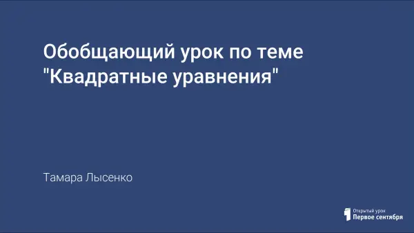 Используя информационные технологии при проведении обобщающего урока в 8-м классе по теме "Квадратные уравнения", удалось активизировать учебно-познавательную деятельность учащихся, сконцентрировать внимание на основных формулах, тем самым добиться лучшего запоминания и усвоения материала. Предложенный выбор заданий позволяет учесть интересы детей, не склонных к творческой работе по математике, и реализовать при обучении математики свободу выбора, как один из воспитательных моментов. Использование компьютера повышает темп урока, увеличивает объём работы, способствует повышению мотивации учащихся, интереса к предмету.