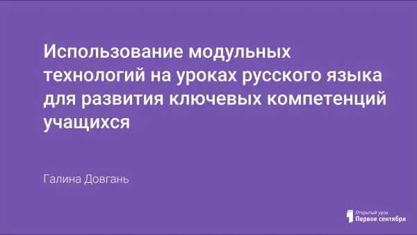 Использование модульных технологий на уроках русского языка для развития ключевых компетенций учащихся