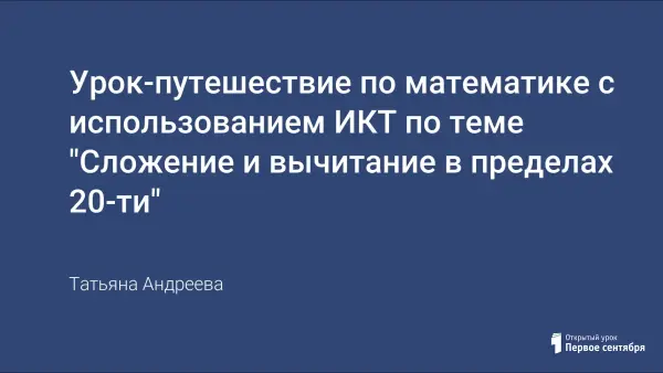 Урок-путешествие с использованием ИКТ, с помощью которого происходит активизация познавательной деятельности учащихся. Дети на уроке в игровой форме отрабатывают навыки быстрого счёта в пределах второго десятка, умение решать задачи; развивается логическое мышление, эрудиция.