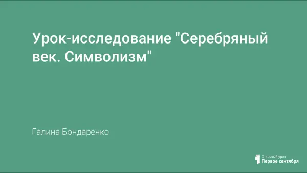Основная цель урока-исследования: ввести учащихся в мир «серебряного века», познакомить с одним из течений века – символизмом, эпохой поисков в политике, экономике, культуре. Учащиеся изучают статьи символистов, анализируют их стихи, «вслушиваются» в музыку этого периода, «всматриваются» в произведения живописи, делают самостоятельные выводы.