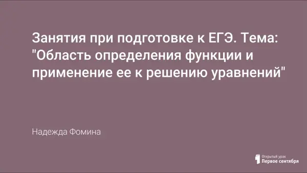 Цель урока: теоретическая часть темы; нахождение области определения функции и применение ее к решению уравнений; применение метода "мажорант" в решении уравнений; самостоятельная подготовка учащихся к занятию, теоретическое и практическое рассмотрение темы.