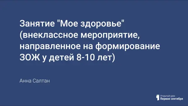 Материал представляет собой сценарий проведения занятия с детьми младшего школьного возраста по теме «Мое здоровье». Мероприятие направлено на формирование у детей навыков здорового образа жизни. Используются разнообразные формы и методы взаимодействия специалиста с аудиторией. Все игры подобраны с учетом возрастных особенностей. Общая продолжительность 40 минут, а оптимальное количество участников занятия 20–25 человек.