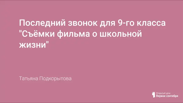 Представлен сценарий Последнего звонка для 9-го класса "Съёмки фильма о школьной жизни".