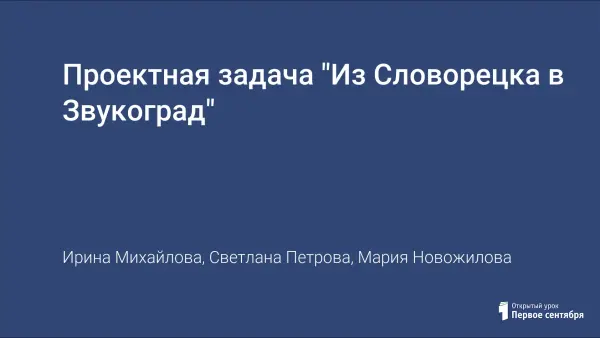 Данная проектная задача позволяет: выявить стартовые возможности учащихся к освоению курса обучения грамоте, определив уровень их компетентности; обнаружить способы взаимодействия детей между собой; определить перспективы в изучении данного курса; зафиксировать исходные знания детей. На решение проектной задачи отводится пять дней в начале учебного года в 1-м классе.