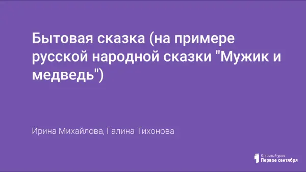 Бытовая сказка (на примере русской народной сказки "Мужик и медведь")
