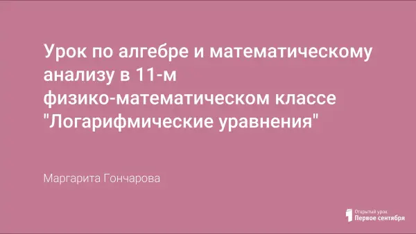 Урок проводится в начале изучения темы. На уроке рассматривается решение простейших логарифмических уравнений, способы решения их с учетом классификации, создается ситуация потери корня и устанавливается причина появления постороннего корня уравнения. Учащиеся самостоятельно ищут наиболее рациональный способ решения, что способствует развитию их творческой активности, логического мышления, у них формируется сознательное отношение к учению, умение вести дискуссию, развивается инициатива и трудолюбие.