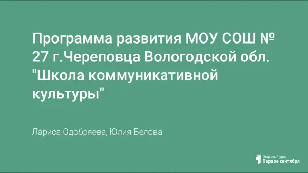 Программа развития МОУ СОШ № 27 г.Череповца Вологодской обл. "Школа коммуникативной культуры"