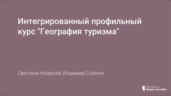 Главная цель курса – охарактеризовать основные аспекты формирования географии современного туризма, рассмотреть информационные технологии в международном туризме. В результате изучения курса у учащихся формируется географическая картина мира, совершенствуется информационная грамотность, углубляются знания базовых курсов географии и информатики.