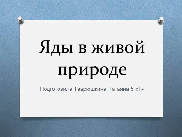 Представлена презентация по теме "Яды в живой природе".