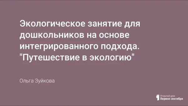 Занятие построено в форме игры-путешествия. Совместно с воспитателем, музыкальным работником, руководителем изостудии, инструктором по физкультуре и при участии родителей дети знакомятся со значением слова «экология», закрепляют основные знания, приобретают навыки экологически грамотного поведения на природе.