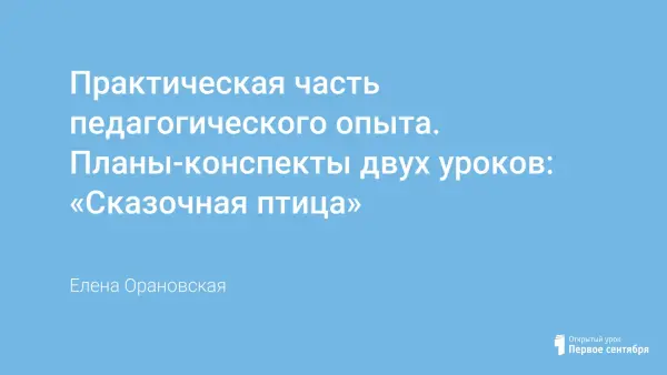 В предлагаемой статье автор приводит план-конспект двух уроков, посвященных теме "Сказочная птица". Организация занятий способствует активизации фантазии у детей и служит главным целям по развитию, обучению и воспитанию. В конце занятия проводится выставка с обязательным обсуждением нарисованных работ. Эти обсуждения способствуют развитию навыков восприятия творчества сверстников и учат выражать детей собственные чувства и мысли. К плану-конспекту двух уроков приложены некоторые демонстрационные материалы, приведены примеры работ учащихся.