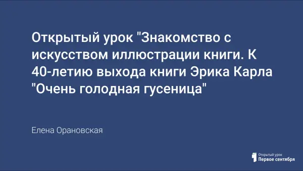 В ходе урока дети узнают о художниках, создающих книги, и впервые попробуют графическую технику, которую использует в своей работе всемирно известный иллюстратор и автор сказок Эрик Карл. В конце урока будет организована выставка работ учащихся, пройдет обсуждение.