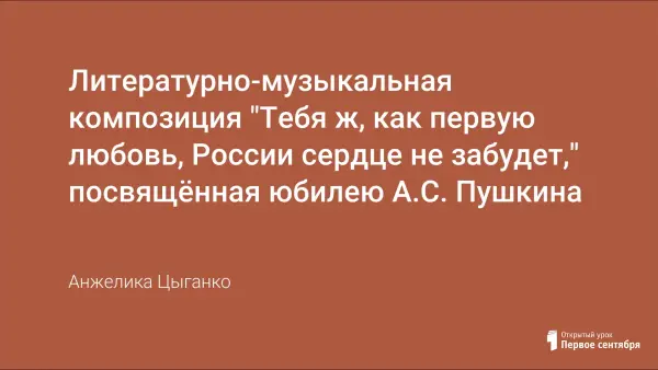 Литературно-музыкальная композиция посвящается 210-летнему юбилею А.С. Пушкина и может быть использована и в качестве вступительного урока, и как заключительное мероприятие пушкинского праздника. В праздновании пушкинского юбилея реализуются различные межпредметные связи и, в первую очередь, с музыкой, пением, живописью. Литературно-музыкальная композиция представляет собой заочную экскурсию по пушкинским местам.