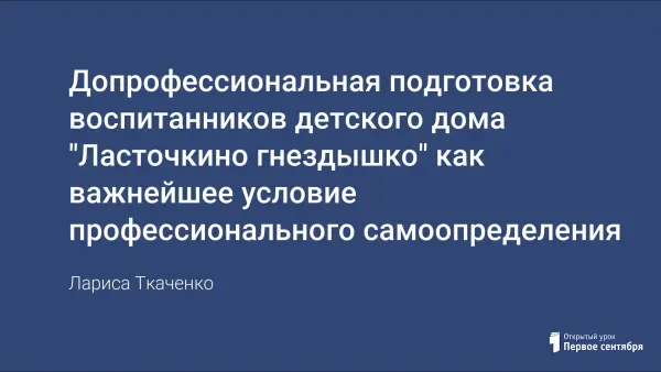Разработка программы "Допрофессиональная подготовка воспитанников детского дома "Ласточкино гнездышко" как важнейшее условие профессионального самоопределения".