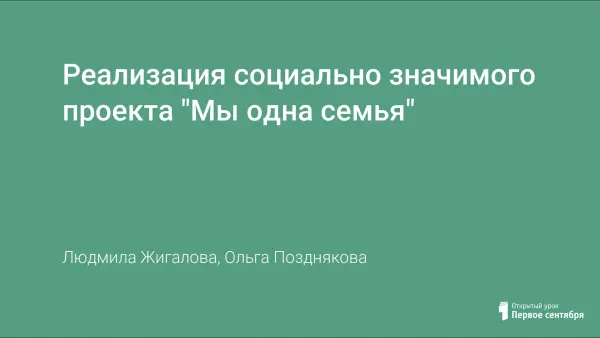 В материале «Реализация социально значимого проекта «Мы – одна семья» прослеживается связь между поколениями: интеграция инвалидов через создание волонтерских отрядов и их совместную деятельность.