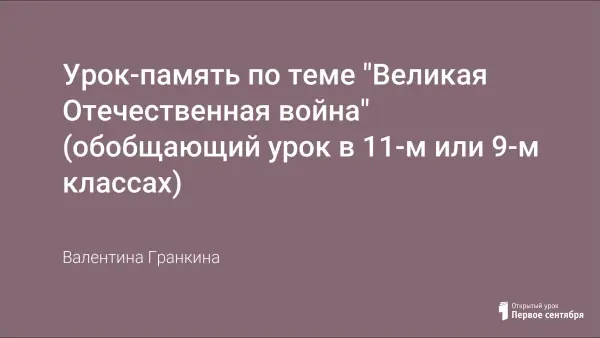 Урок-память посвящается миллионам павшим, славным ветеранам Великой Отечественной войны, выстоявшим, победившим, подарившим миру жизнь и счастье. Поколению, вступающему в жизнь, посвящается. Мы знаем по сбивчивым, трудным рассказам о горьком победном пути. Поэтому должен хотя бы наш разум, дорогой победы пройти. И мы разобраться обязаны сами в той боли, что мир перенес, конечно, мы смотрим иными глазами, такими же полными слез.