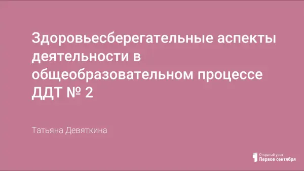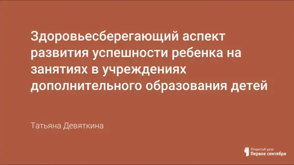 В статье рассматривается здоровьесберегающий аспект деятельности педагога для развития успешности ребёнка на занятиях в УДОД. На основании анализа и обобщения исследований медиков, физиологов, психологов и педагогов раскрываются подходы сохранения и формирования здоровья детей.