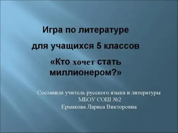 Игра по литературе "Кто хочет стать миллионером". 5-й класс