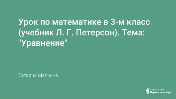 Урок является обобщающим, систематизирующим и одновременно знакомит детей со взглядом на уравнения как предложения с переменной. Главное на уроке – систематизировать знания учащихся, дать возможность каждому ребенку осмыслить свои затруднения в решении уравнений и наметить пути их устранения. На протяжении всего урока задания выполняются по трем уровням.