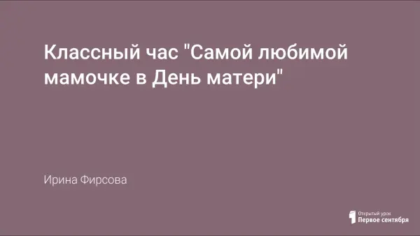 Среди многочисленных праздников, отмечаемых в нашей стране, День матери занимает особое место. Это праздник, к которому никто не может остаться равнодушным. В этот день хочется сказать слова благодарности всем матерям, которые дарят детям любовь, добро, нежность и ласку. Именно этому прекрасному празднику посвящен классный час и презентация "Самой любимой мамочке".