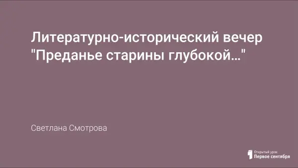 Внеклассное мероприятие «Преданье старины глубокой…» в форме литературно-исторического вечера предназначено для учащихся 8–9-х классов. Такие мероприятия обогащают душу ребенка, наполняют ее гордостью за свой народ, свою Родину.