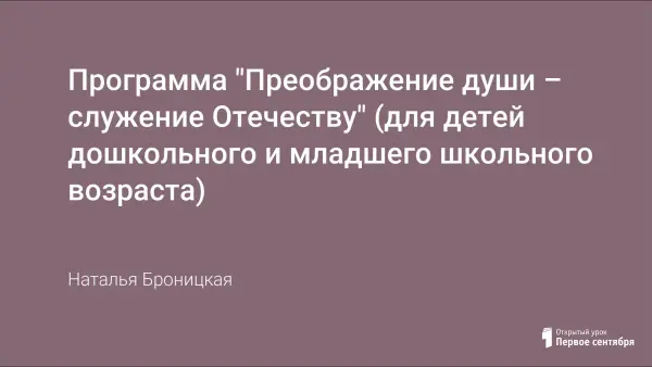 Программа содействует социальному и духовно-нравственному развитию ребенка путем приобщения его к отечественным духовно-нравственным традициям. Предложен механизм реализации программы и методы оценки ее результативности.
