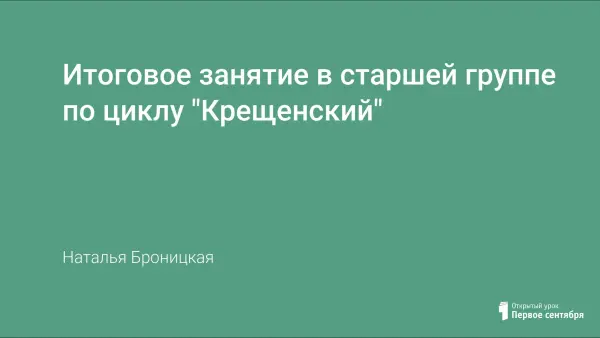 Представленное занятие направлено на закрепление представлений детей о событиях и главных особенностях праздника Крещения Господня; способствует формированию навыков доброжелательного, добродетельного поведения и развитию нравственных чувств детей. Предложенный материал может быть использован педагогами дошкольных учреждений в работе по формированию нравственной личности ребенка.