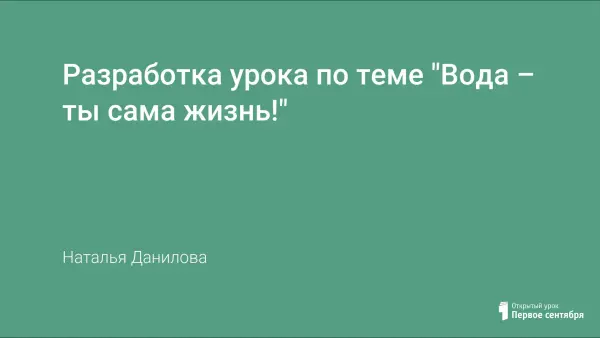 Разработка урока по теме "Вода – ты сама жизнь!"